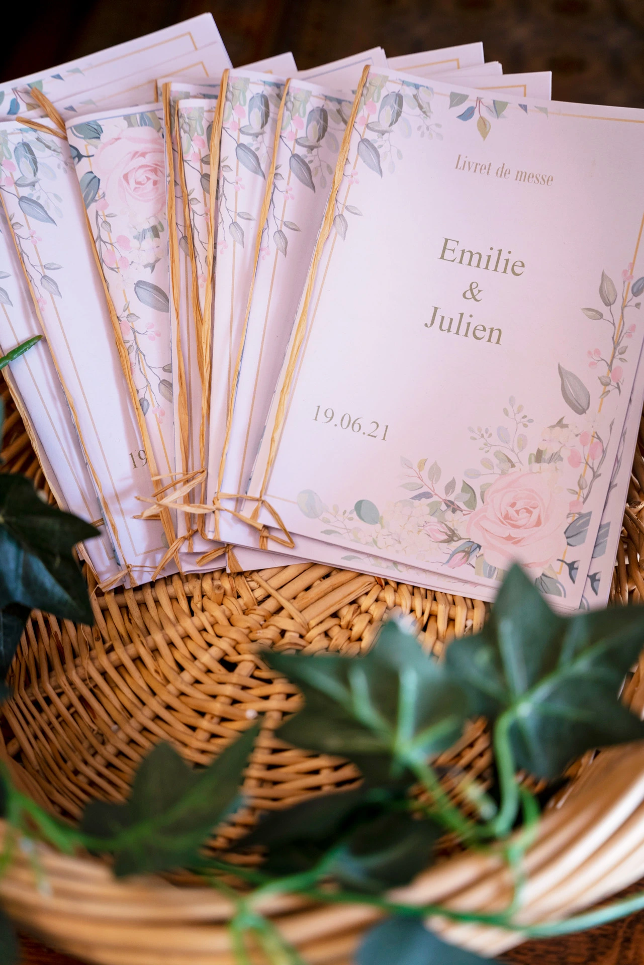 Émilie et Julien ont célébré leur mariage le 19 juin 2021 lors d’une cérémonie à l’église et une cérémonie civile, entourés de leur famille et de leurs proches dans un cadre intimiste.